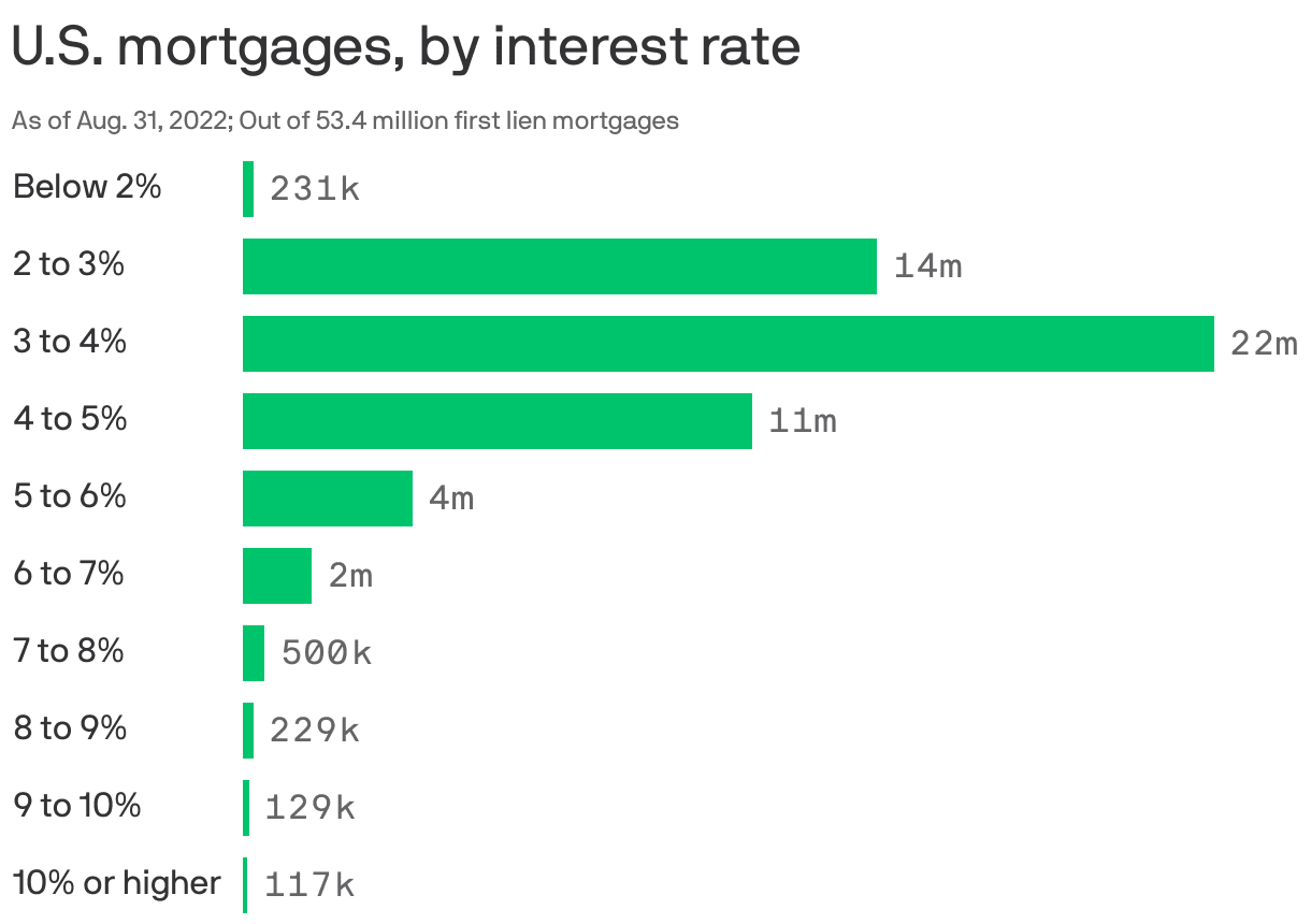 Still, it’s obvious that rapidly rising interest rates will suppress demand for mortgages and therefore houses. More than half of homes purchased in the US are purchased with some type of mortgage. As the cost of financing rises, less consumers look to finance homes.