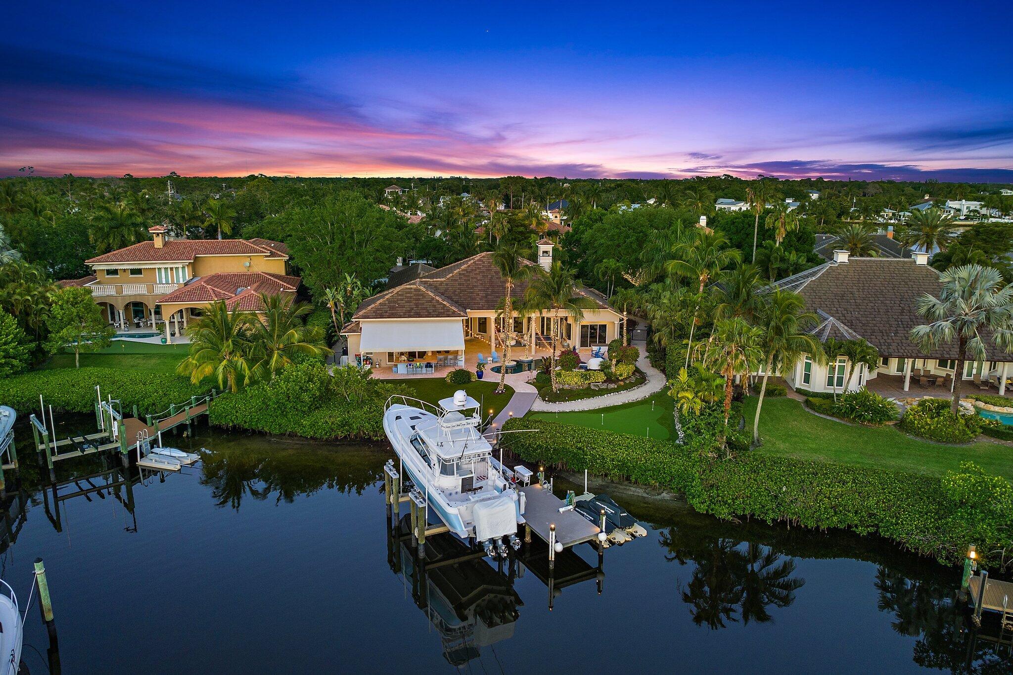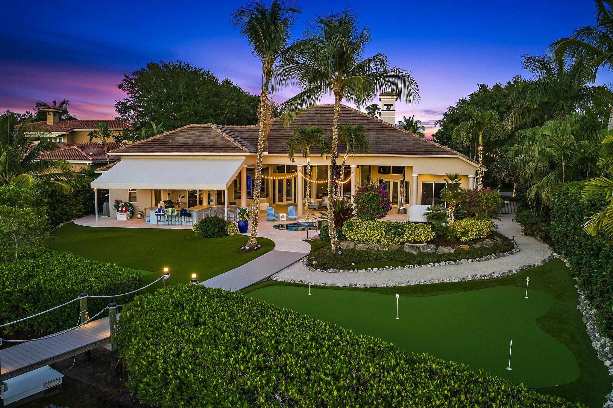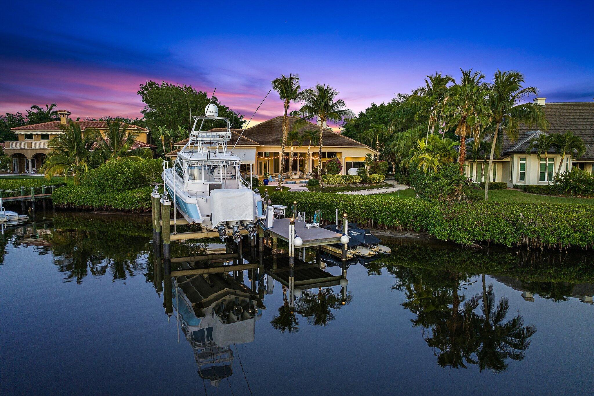 A boater's and entertainer's dream! Experience waterfront luxury living with over 100 feet of Loxahatchee River waterfront! This stunning 4,336 sq ft home, situated on .68 acres, is dramatically updated inside and out. Open the front door into an expansive living room, overlooking a beautiful outdoor living area, complete with a custom pool/spa, expanded outdoor kitchen, turfed yard and putting green, and a recently rebuilt dock complete with a 40k lb lift. The primary suite features a split bathroom, whirlpool tub and sauna, and newly built out dual walk-in closets. With an updated kitchen, 2020 roof, refreshed guest rooms, and brand new beautiful climate controlled wine storage, this home truly has it all. Ocean/restaurants just a short boat ride away.