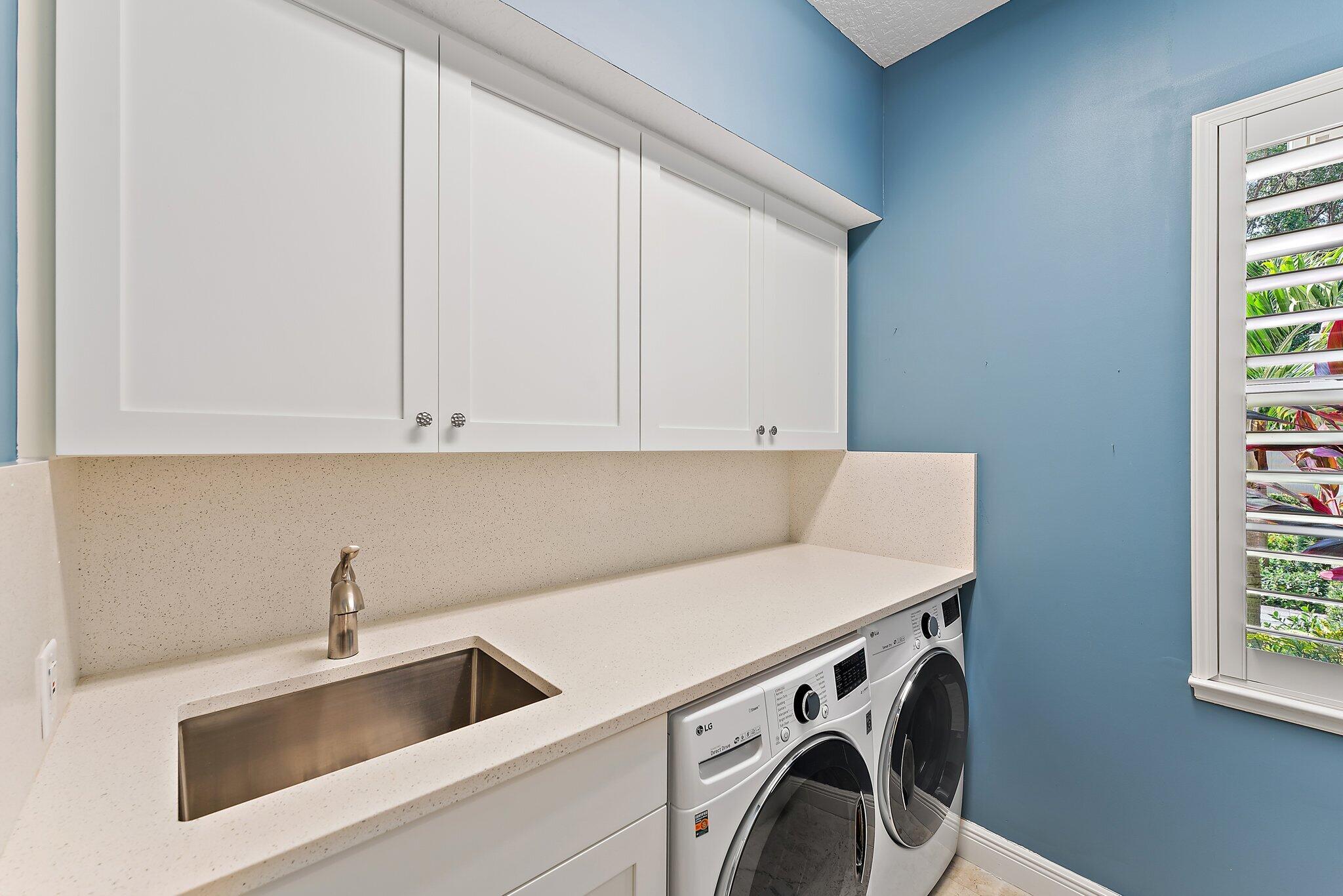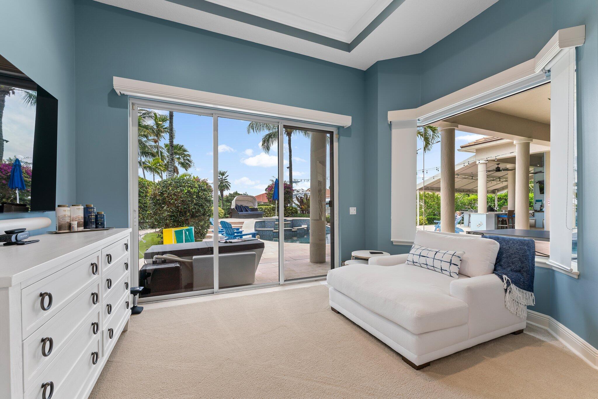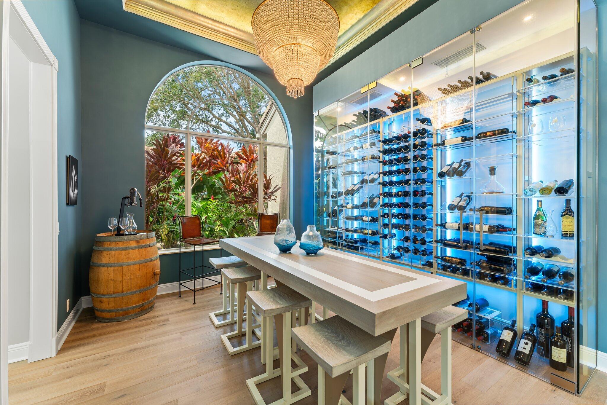 A boater's and entertainer's dream! Experience waterfront luxury living with over 100 feet of Loxahatchee River waterfront! This stunning 4,336 sq ft home, situated on .68 acres, is dramatically updated inside and out. Open the front door into an expansive living room, overlooking a beautiful outdoor living area, complete with a custom pool/spa, expanded outdoor kitchen, turfed yard and putting green, and a recently rebuilt dock complete with a 40k lb lift. The primary suite features a split bathroom, whirlpool tub and sauna, and newly built out dual walk-in closets. With an updated kitchen, 2020 roof, refreshed guest rooms, and brand new beautiful climate controlled wine storage, this home truly has it all. Ocean/restaurants just a short boat ride away.