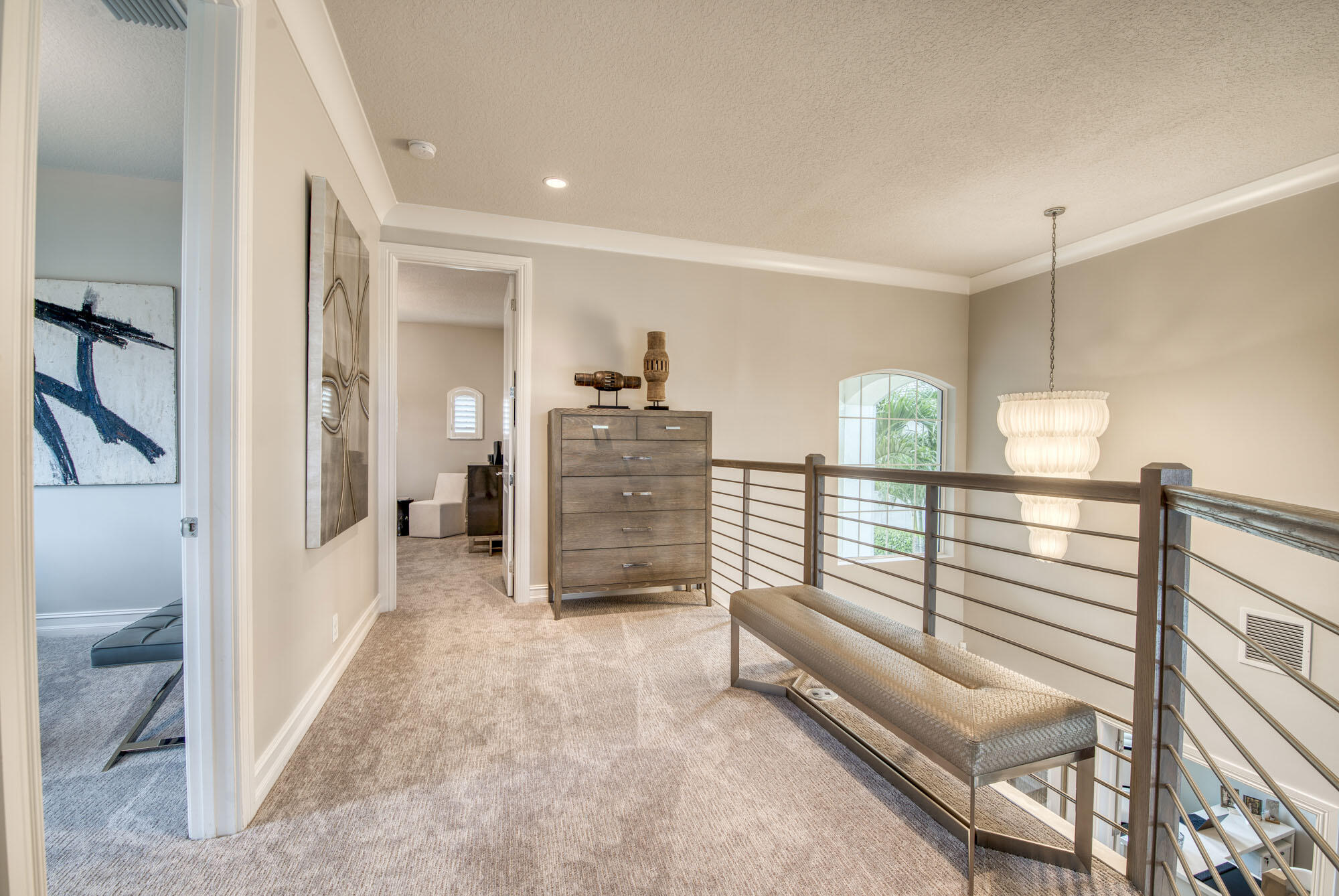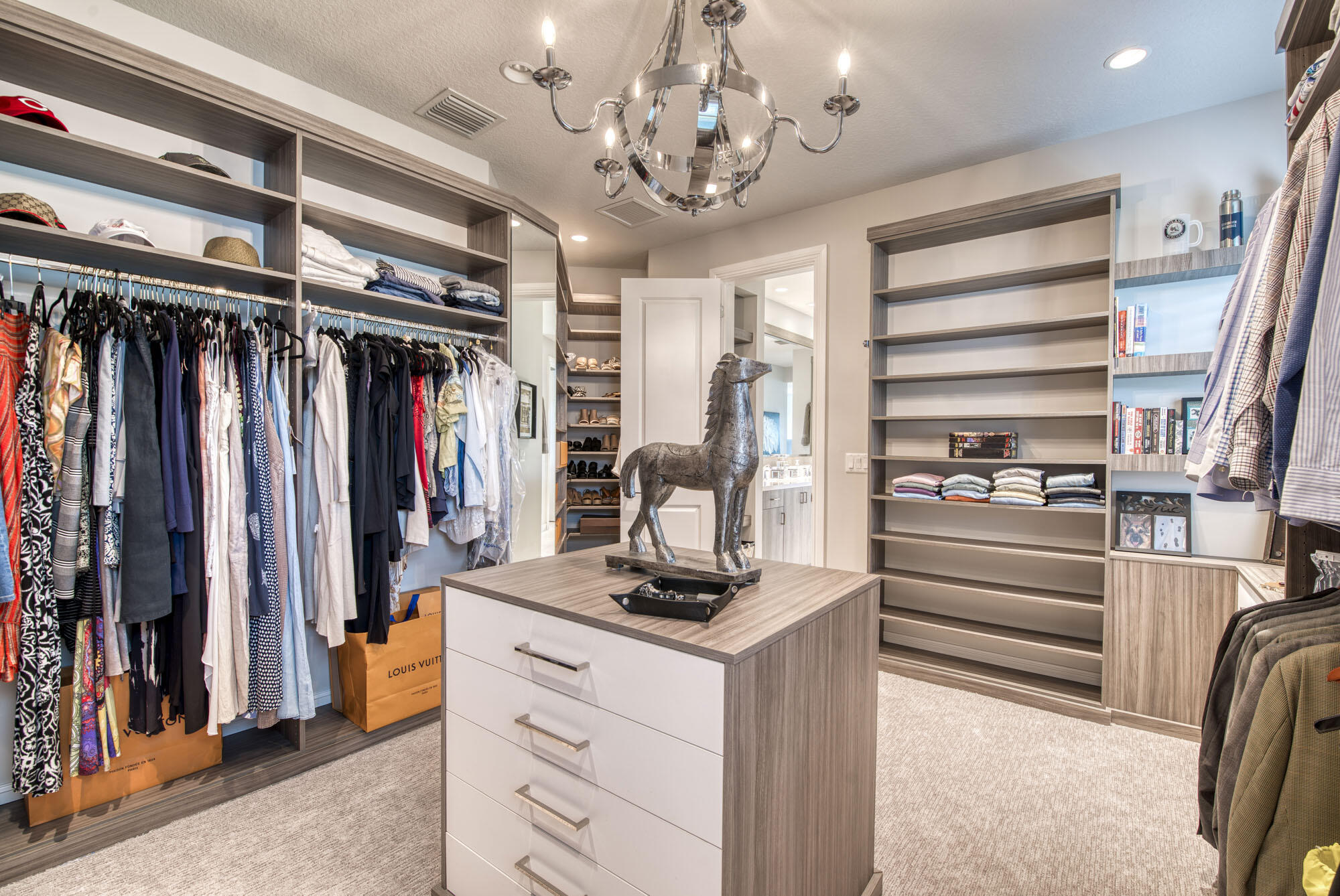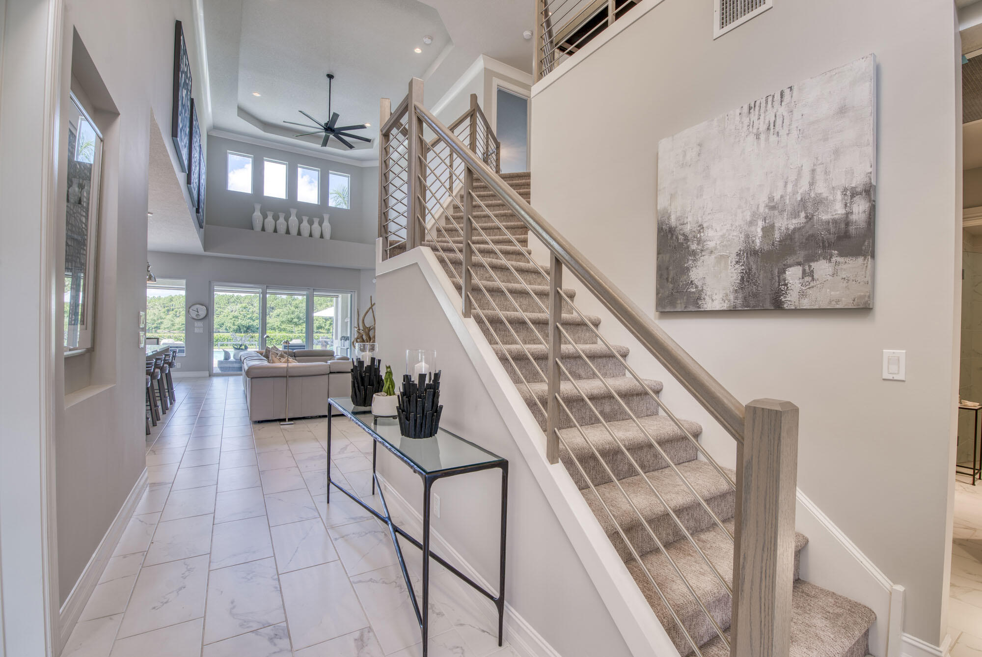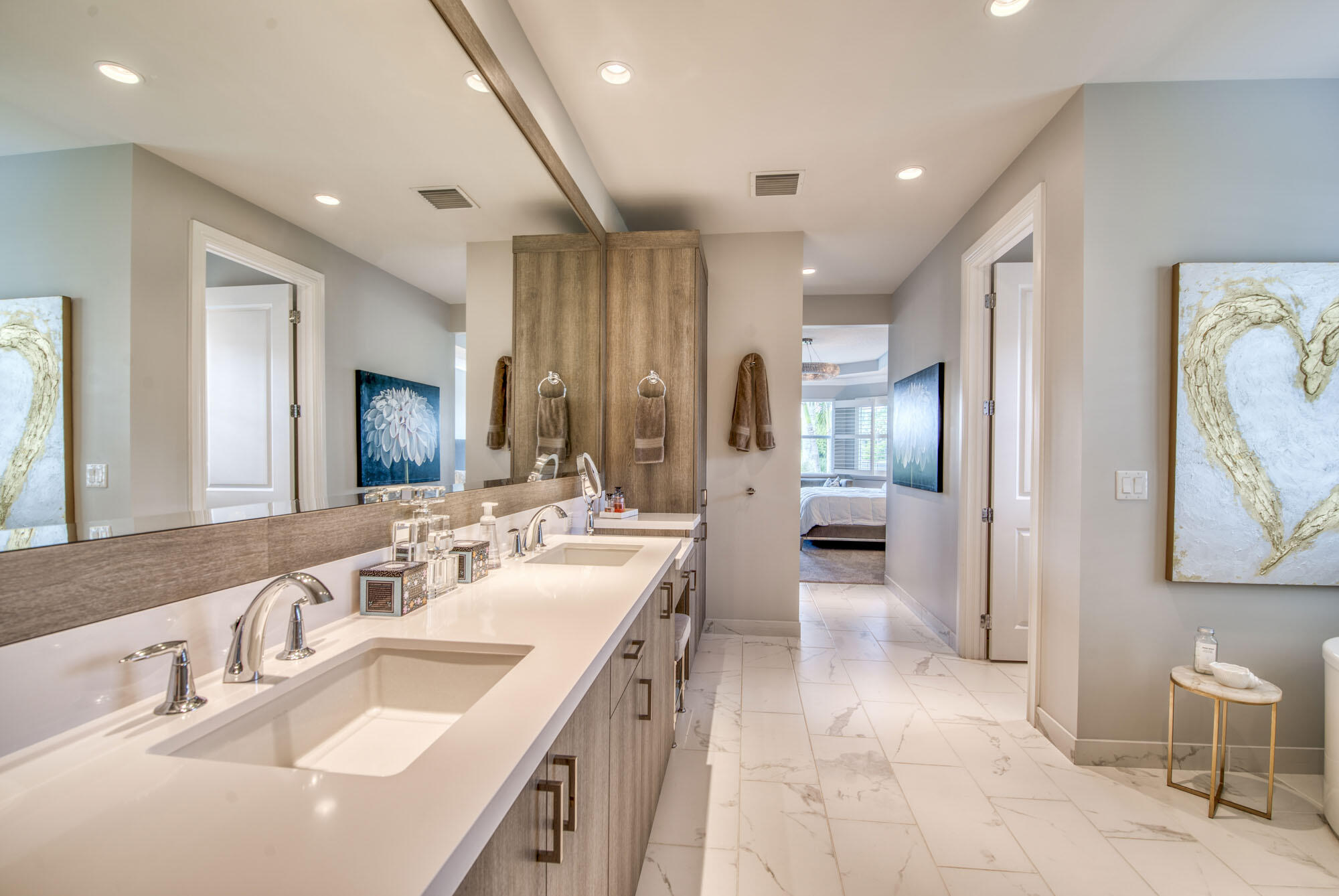 This exquisitely designed 2019-built home offers breathtaking lake, golf & preserve views from one of the best homesites in the resort style gated community of Jupiter Country Club. This rare Saviero model is one-of-a-kind and has 4 bedrooms, 4 baths plus a flex room/den. The prime cul-de-sac location within the community provides sweeping tree-lined views of Riverbend Park, the winding lake & the 11th green. Live comfortably in this energy efficient home with CBS construction, natural gas, reverse osmosis water filtration system in kitchen, and impact glass windows & doors throughout. The newly replaced custom impact glass front door and voluminous two story ceilings welcome you into the open concept great room with immediate backyard views through the wall to wall windows. Professionally designed & customized from top to bottom, this home exudes modern sophistication and provides all the essentials of easy Florida living. You will see the high quality finishes and attention to detail flow throughout the home. Stunning light fixtures are throughout the home. No standard finishes here! Rest peacefully in the primary retreat where the original floor plan was modified to encompass a downstairs guest room and transformed into the primary spa-like bath & expansive modern custom closet. Friends & family will gather at the kitchen's expansive center island featuring a waterfall quartz countertop & pendant lighting. Kitchen upgrades include gorgeous white solid wood cabinetry with glass panels, pull out shelving, tile backsplash, built-in refrigerator, 5 burner gas cooktop & double ovens. The flex room/office and a full bath are located downstairs. 3 guest bedrooms are upstairs-all bedrooms have walk-in closets with built-ins & 2 have ensuite baths. Step out through the great room's sliding glass doors into the outdoor oasis. Surrounded by mature palm trees and tropical landscaping, this area boasts a covered lanai, motorized retractable screens, a lovely pool & spa with a sunshelf and the most serene preserve, lake and golf course vistas. Sunsets are enchanting from this relaxing outdoor living space perfect for lounging & entertaining! This home can be purchased turnkey furnished including a golf cart. Jupiter Country Club is a luxury gated community conveniently located within close proximity of I-95 and the FL Turnpike, beaches, shopping, restaurants, parks & nature preserves. Club amenities & events offer a plethora of social opportunities and include a Greg Norman Signature golf course, 2 resort-style pools, the Sway restaurant & bar, a state-of-the-art fitness center + yoga/mat pilates/barre group fitness classes, massage/facial treatment services, tennis, bocce ball, pickle ball & basketball. Members enjoy reciprocal privileges to Invited Clubs worldwide. Live your best life here!