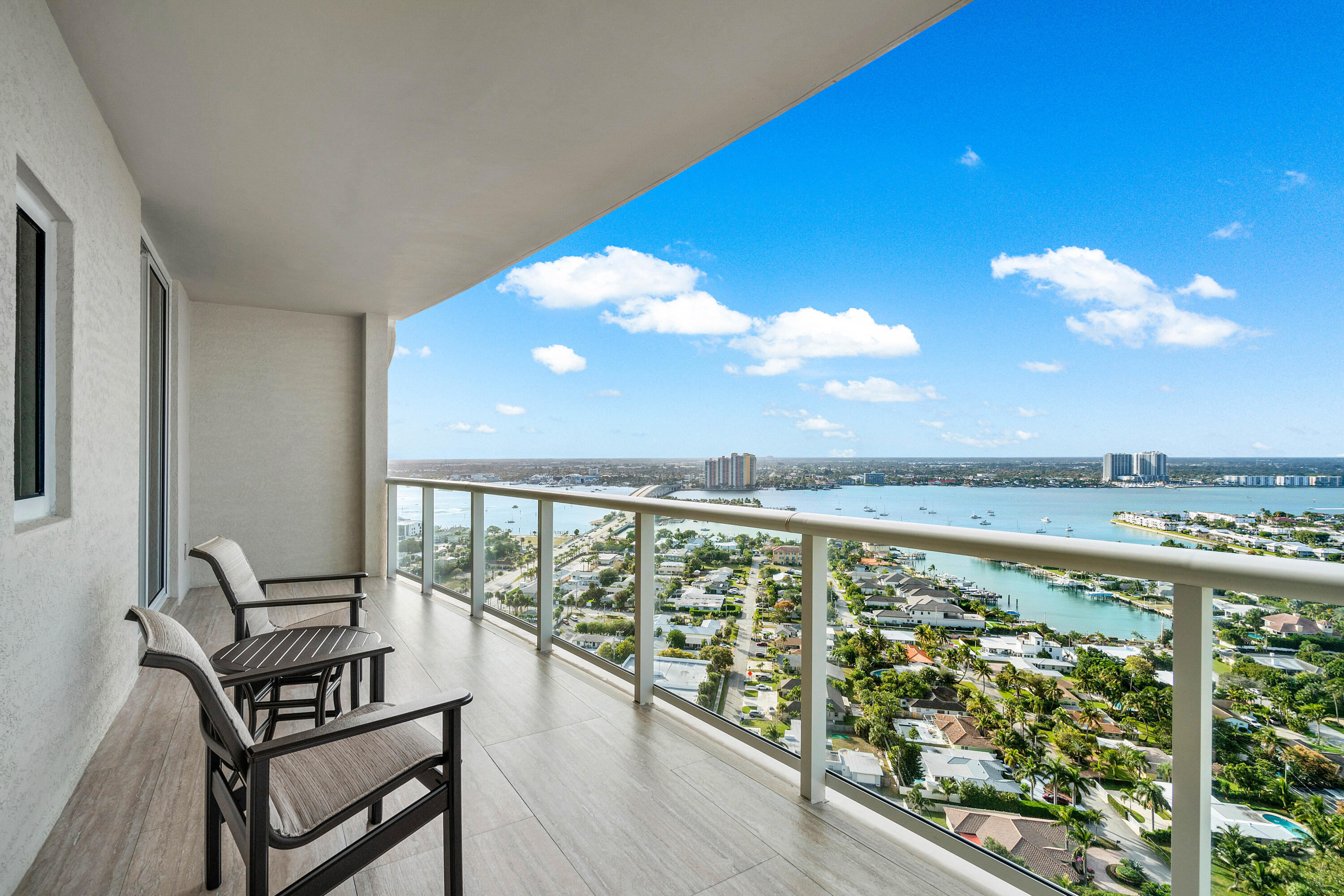 Curated finishes include large-format porcelain flooring, custom ceiling installations, and sculptural lighting that accentuates the home's architectural rhythm. Natural light floods the interiors, illuminating panoramic vistas of Palm Beach Island, the city skyline, and the shimmering coastline beyond (SEE SUPPLEMENT)... The open-concept living and dining spaces are designed for elevated entertaining, while the chef's kitchen, outfitted with Sub-Zero and Wolf appliances, integrates seamlessly into the refined aesthetic. Each bedroom is a private retreat, with en-suite baths and designer detailing. The primary suite is ocean-facing, with a spa-like bath and boutique-inspired dressing spaces. Residents enjoy a curated collection of Ritz-Carlton amenities tailored for discerning lifestyles, including private beachfront access, two resort-style pools, a residents-only restaurant, 24-hour concierge service, valet parking, a fitness center, and an advanced water purification system throughout.